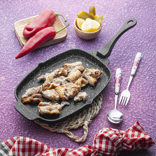 اگر بهدنبال آشپزی سالم هستید یا رژیم غذای خاصی را دنبال میکنید، باید از ظروفی استفاده کنید که این امر را برایتان فراهم سازند. ظروفی که میزان مصرف روغن را به حداقل رسانده و کیفیت مواد غذایی را حفظ کنند. تابهی گریل «نالینو» مدل « Fabia 63343» محصولی کاربردی و مناسب برای هر آشپزخانهای است. این تابه جنسی از چدن دارد که کمک میکند بدون قطرهای روغن، انواع مواد غذایی از جمله گوشت و سبزیجات را به بهترین شکل ممکن مغزپخت کنید. برای مثال انواع کتلت و کوکو، فیلهی مرغ، ماهی، استیک را چنان مغزپخت میکند که شاید طعم آنها بسیار لذیذتر از روش پخت با روغن باشد. فقط کافی است تابه را روی حرارت بگذارید تا حسابی داغ شود. بعد مواد غذایی را روی آن قرار دهید و شاهد صدای لذتبخش طبخ آن باشید. این تابه چدنی ضخامت بسیار مناسبی دارد و دارای یک دسته است که جنس این دسته نیز از چدن است و دیگر نیازی نیست نگران سوختن آن باشید. از ویژگیهای مهم این ظرف قابلیت استفاده در فر است.
