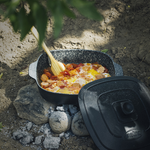 تابه چدن Adrina نالینو دارای عمق 7 و عرض 28 سانتیمتری است. سطح کفه آن صاف است. مناسب برای پختن برنج تا سرخ کردن انواع خوراکیها یا درست کردن لازانیا و هر آنچه که فکر میکنید، است. میتوان گفت این ظرف تنها یک تابه نیست بلکه ظرف پخت است! این تابه چدنی برای سرخ کردن با روغن یا بدون روغن بسیار کاربرد دارد و میتوان از آن به عنوان یک قالب چدنی برای پخت انواع کیک، سوفله ونان نیز استفاده کرد. ارتفاع بلند و طرح مربعی آن، البته بدون در نظر گرفتن دستگیره، این محصول را برای طبخ انواع خورش و پخت برنج و ته چین و انواع لازانیا مناسب ساخته است. تابه نالینو مدل آدرینا سایز 28 یک همراه خوب در سفرهای کمپی یا پیکنیکهای خانوادگی محسوب میشود.