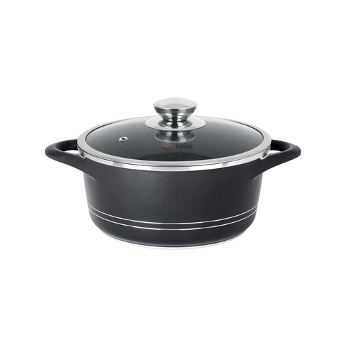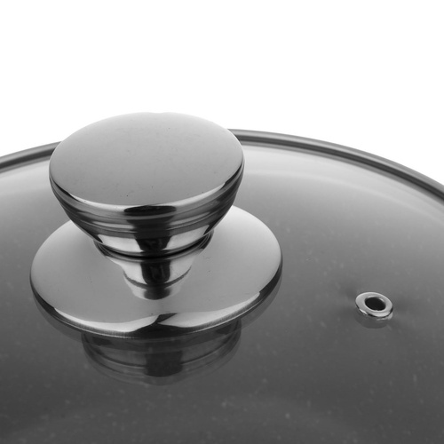 قابلمه تک طرح ایتالیا سایز 16 روکشی از جنس گرانیت نچسب دارد که به آشپزی آسان و بیدردسر کمک میکند. درب این محصول از جنس پیرکس است.