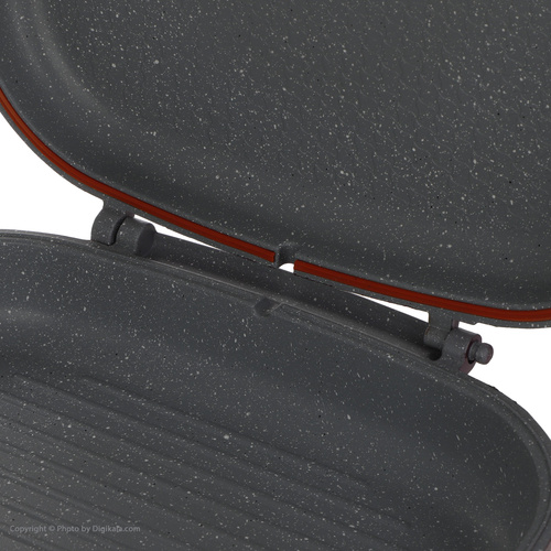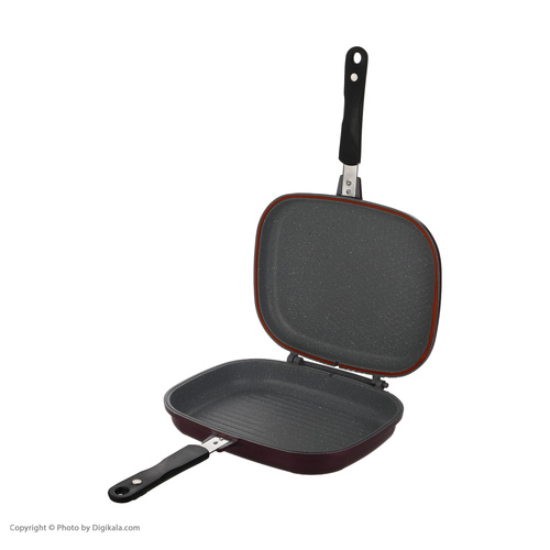 سایر توضیحات- تابه دو طرفه سایز 48×10×32 سانتیمتر و وزن 1820 گرم با دسته باکالیت و کفی گریل به همراه واشر