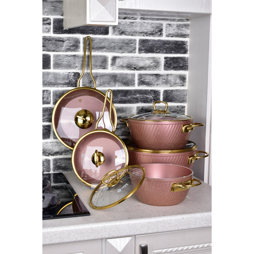 سرویس قابلمه 10 پارچه مدل فورج نیاز های پخت و پز آشپزخانه شما را پوشش می دهد.ساخت درپوش ها به گونه ای ست که کاملا با ظرف چفت می شود. ساختار بدنه این محصول از گرانیت نچسب مرغوب اروپایی است که طول عمر آن را بالا می برد.و همچنین سوپاپ های کوچکی که به منظور خارج شدن بخار روی درب های این ظروف طراحی شده مانع از سر ریز شدن مایعات هنگام پخت و پز می شود.این سرویس 10 پارچه شامل: