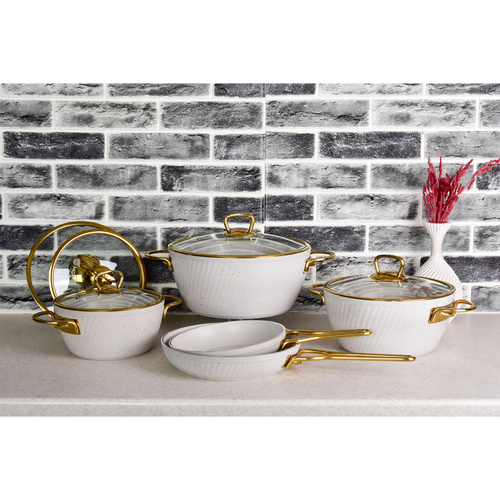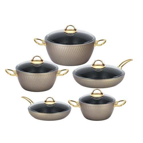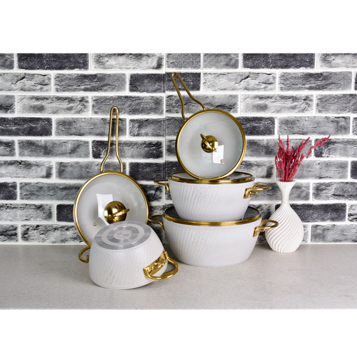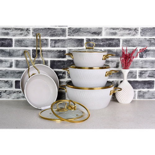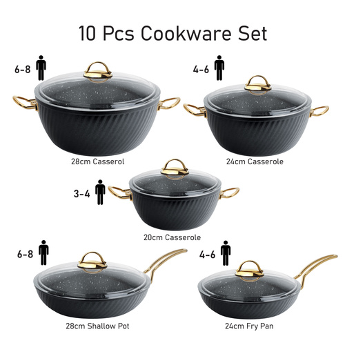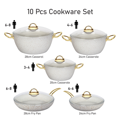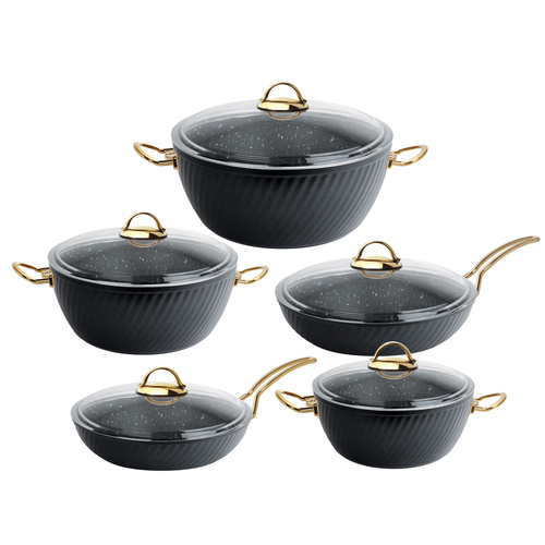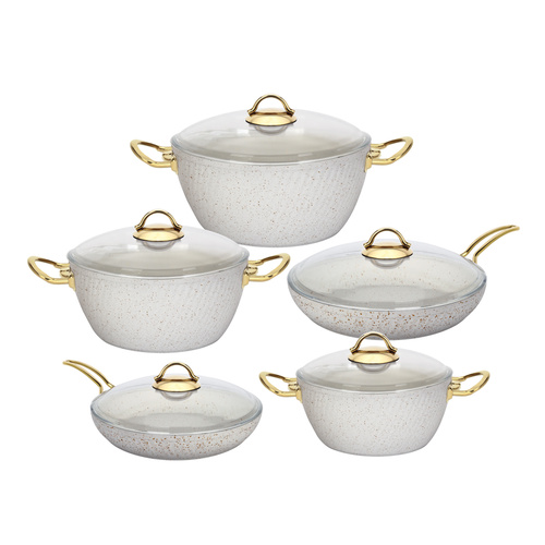 سرویس قابلمه 10 پارچه مدل فورج نیاز های پخت و پز آشپزخانه شما را پوشش می دهد.ساخت درپوش ها به گونه ای ست که کاملا با ظرف چفت می شود. ساختار بدنه این محصول از گرانیت نچسب مرغوب اروپایی است که طول عمر آن را بالا می برد.و همچنین سوپاپ های کوچکی که به منظور خارج شدن بخار روی درب های این ظروف طراحی شده مانع از سر ریز شدن مایعات هنگام پخت و پز می شود.این سرویس 10 پارچه شامل: