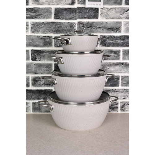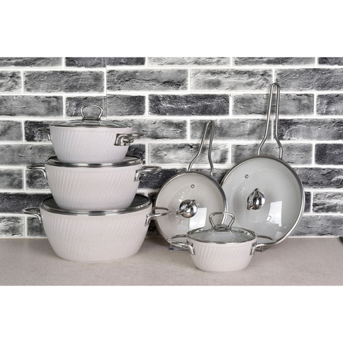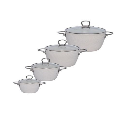 شامل : تابه تک دسته سایز 20 همراه درب, تابه تک دسته سایز 24 همراه درب , قابلمه سایز 20 همراه درب, قابلمه سایز 24 همراه درب, قابلمه سایز 28 همراه درب