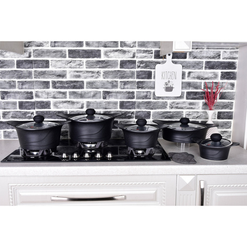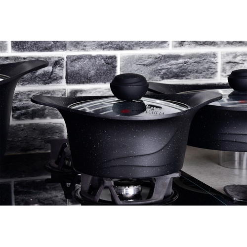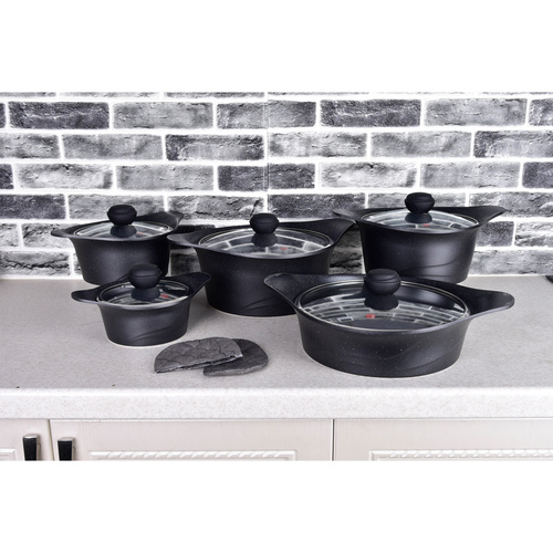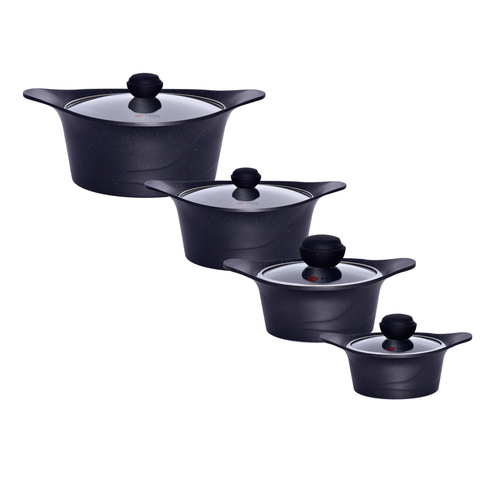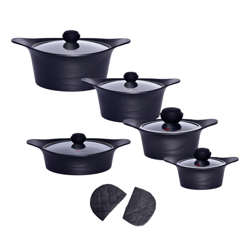 این سرویس قابلمه 12 پارچه طرح کرهای C شامل چهار قابلمه و چهار درب پیرکس بعلاوه یک تابه دو دسته همراه درب و یک دو عدد دستگیره است. جنس روکش این ست، گرانیت نچسب است.