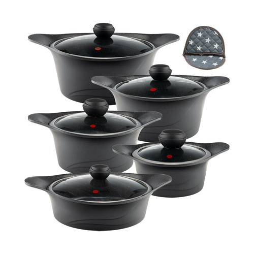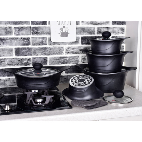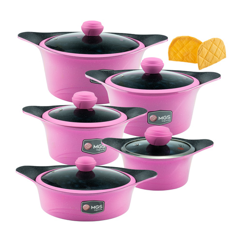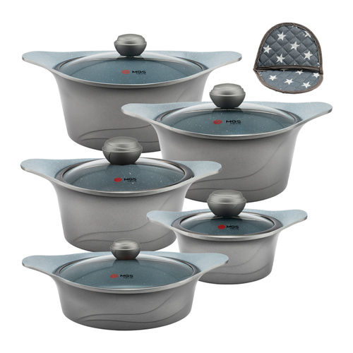 سرویس قابلمه 12 پارچه ام جی اس برای کسانی که به دنبال ظروفی کامل و با کیفیت میگردند گزینه عالی است. اگر برای جهیزیه خود به دنبال بهترین سرویس قابلمه و با قیمت مناسب هستید. ولی چندان وقت کافی برای خرید ظروف به صورت تکی را ندارید. ما به شما این محصول زیبا را معرفی میکنیم.طراحی دربهای آن بهروز و بسیار جذاب میباشد. جنس شیشه آن از بهترین نوع شیشه یعنی پیرکس ساخته شده است. نچسب بودن قوی این سرویس باعث شده که به راحتی تمیز شوند. بهطوری که با یک دستمال کاغذی به سرعت تمیز می شود و هیچ ردی از کثیفی باقی نمیگذارد. کیفیت بالای گرانیت, اجازهی استفاده از قاشق یا کفگیر استیل را به شما میدهد. به گونهای که هیچ خط و خشی روی آن نمیافتد. یکی دیگر از نکتههای مثبت این محصول ماندگاری بالای آن است.