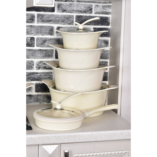 این سرویس قابلمه 19 پارچه کرهای شامل چهار قابلمه و چهار درب پیرکس بعلاوه یک تابه دو دسته و یک تابه تک دسته همراه درب و چهار عدد دستگیره است. جنس روکش این ست، گرانیت نچسب است. نحوه ساخت این سرویس قابلمه 19 پارچه فورج و دستههای آن به بدنه متصل شده است.