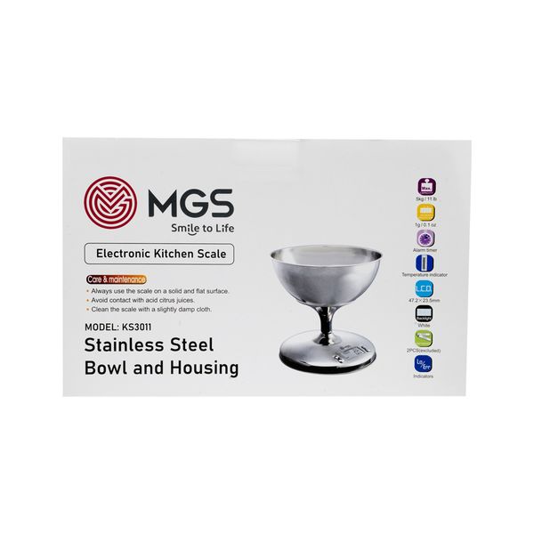 ترازو آشپزخانه دیجیتال ام جی اس مدل 3011 حداکثر ظرفیت قابل اندازه‌گیری 5 کیلوگرم با دقت اندازه‌گیری 1 گرم