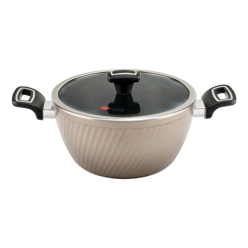 این سرویس قابلمه 10 پارچه طرح ماینز شامل سه قابلمه و سه درب پیرکس بعلاوه دو تابه تک دسته همراه درب است. جنس روکش این ست، گرانیت نچسب است. نحوه ساخت این سرویس قابلمه 10 پارچه فورج و دستههای آن به بدنه متصل شده است.