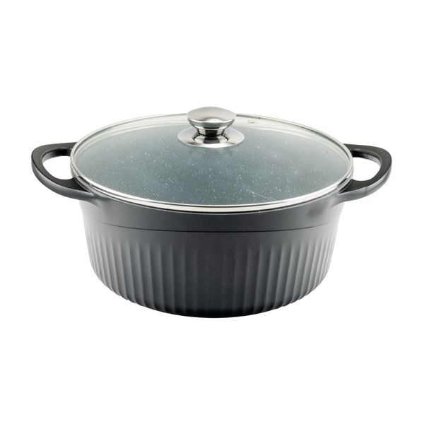 قابلمه سایز 28 گرانیت طرح جرمنی D از جنس گرانیت و مدل دایکست است، دسته‌های این قابلمه از جنس بدنه است. این قابلمه گرانیتی کوچک با قطر 28 سانتی‌متر مناسب طبخ انواع غذاست.