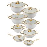 سرویس قابلمه 16 پارچه فورج طرح ماینز سری سوم یک سرویس ظروف پخت و پز عالی برای هر سلیقهای است. این ست شامل پنچ قابلمه در سایزهای 16/20/24/28/32، یک تابه دو دسته سایز 28 و دو تابه تک دسته سایز 28 و 20 است.
