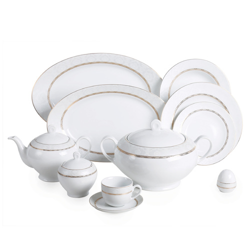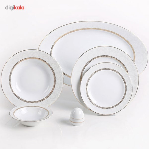 برای انتخاب ظروف سرو باید همیشه نهایت ذوق و سلیقه خود را به کار بگیرید. در وهلهی اول زیبایی ظرف و در نهایت دوام و کیفیت آن باید مورد تایید باشد. سرویس غذاخوری 102 پارچه «چینی زرین ایران» سری ایتالیا اف مدل «هدیه» با کیفیت ساخت عالی، جای خود را نه تنها در خانههای ایرانی باز کرده و مورد استقبال واقع شده است. این سرویس چینی برای 12 نفر طراحی شده و تمامی ظروفی که برای برگزاری یک مهمانی به یاد ماندنی نیاز دارید را در خود دارد. اقلام این سرویس پذیرایی شامل یک ظرف سوپ دردار با گنجایش 3000 سیسی، یک عدد کاسه بزرگ سالاد با قطر 24/5 سانتیمتر، 12 عدد پیاله با قطر 14/5 سانتیمتر است. دو عدد دیس بیضی شکل با قطر 38 سانتیمتر و یک عدد با قطر 42 سانتیمتر نیز در سرویس چینی مدل هدیه داریم. بشقابهای غذاخوری 18 عدد بودهاند و به شکل دایره و با قطر 25 سانتیمتر هستند. 12 عدد بشقاب خورشخوری با قطر 22/2 سانتیمتر و 18 عدد پیشدستی نیز با قطر 19 سانتیمتر به همراه یک قوری با گنجایش 1100 سیسی از دیگر اقلام این سرویس هستند. ست چایخوری این سرویس چینی شامل 12 عدد فنجان دستهدار با قطر 8 سانتیمتر، 12 عدد نعلبکی با قطر 14 سانتیمتر، دو عدد قندان با گنجایش 330 سیسی و دو شکرریز با گنجایش 330 سیسی است. و در نهایت 6 عدد نمکدان با گنجایش 55 سیسی تکمیل کننده اقلام سرویس سری چینی زرین ایران مدل هدیه است. رنگ اصلی این سرویس سفید بوده و با طلا تزیین شده است. فناوری دکور آن رو لعابی است و به واسطه تزیینات طلا نباید در ماشین ظرفشویی شسته شود. رنگ طلایی این سرویس زیبا به حدی چشمگیر است که دیدگان را به خود خیره میکند.