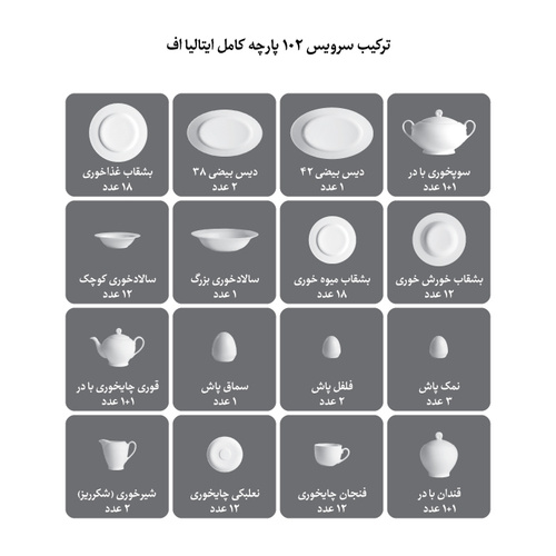 سرویس 102 پارچه چینی زرین ایران مدل ایتالیا اف هدیه درجه عالی