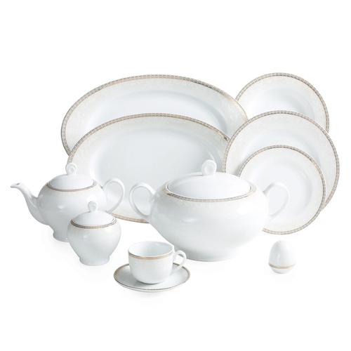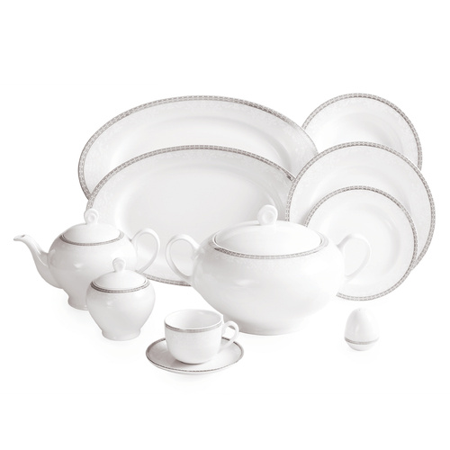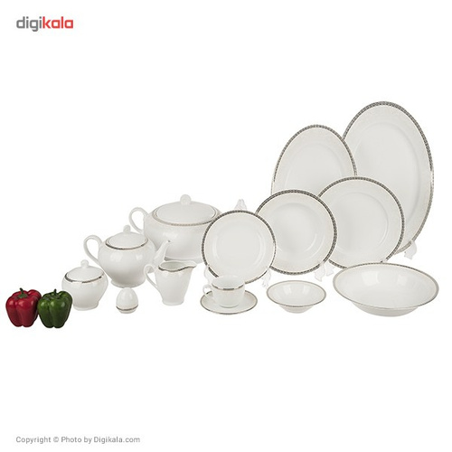 یکی از ویژگیهای سرویسهای غذاخوری که دارای تعداد پارچههای زیاد هستند این است که برای مهمانیهای 12 نفره مناسب بوده و تمام اقلام مورد نیاز برای یک مراسم شام را دارا هستند. سرویس غذاخوری 102 پارچه «چینی زرین ایران» سری ایتالیا اف مدل «Riva» با کیفیت ساخت درجه یک، پیشنهادی عالی برای بزگذاری یک مهمانی مجلل خواهد بود. این سرویس زیبا که در عین سادگی طراحی شده، بسیار چشمگیر و جذاب است. رنگ سفید و براق زمینه با وجود نوارهای نقرهای ظریفی که دورتادور آن نقش بسته دلیل اصلی منحصربهفرد بودن این ست است. به دلیل وجود نوارهای نقرهای در طراحی این ظروف، شما قادر نخواهید بود از آنها در مایکروویو استفاده کنید. ولی با خیالی آسوده میتوانید ظروف را در ماشین ظرفشویی قرار داده و نگران پاک شدن طرحهای روی آن نخواهید بود. این ست 102 پارچه برای 12 نفر طراحی شده و دارای یک سوپخوری دردار، یک کاسه بزرگ سالاد، 12 عدد پیاله سالادخوری، 3 عدد دیس، 18 عدد بشقاب غذاخوری، 12 عدد بشقاب خورشخوری، 18 عدد پیشدستی میوهخوری و 6 عدد نمکدان است. همچنین برای سرو چای نیز میتوانید روی این سرویس زیبا حساب کنید. زیرا سرویس غذاخوری 102 پارچه چینی زرین ایران دارای یک قوری، 12 عدد فنجان، 12 عدد نعلبکی، یک عدد قندان دردار و 2 عدد شکرریز است. به دلیل وجود 2 عدد ظرف شکر شما قادر هستید یکی را برای سرو شکر و دیگری را برای سرو شیر مورد استفاده قرار دهید. با وجود اینکه این سرویس دارای کیفیت ساخت درجه یک است، ولی چیزی از سرویسهای درجه عالی کم ندارد. زیرا در ساخت این ست نیز نهایت دقت و ظرافت به کار رفته است. فقط برای آن دسته افرادی که قیمت کالا برایشان خیلی مهم است و قادر به صرف هزینههای سنگین برای خرید سرویسهای گرانقیمت نیستند تدابیری اندیشیده شده است.