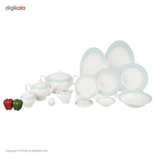 سرویس 102 پارچه «چینی زرین ایران» سری ایتالیا اف مدل «Sepid Sadaf» برای مهمانیهای مجلل 12 نفره طراحی شده است. این سرویس دارای یک سوپخوری دردار، یک کاسه بزرگ سالاد، 12 عدد پیاله سالادخوری، 3 عدد دیس، 18 عدد بشقاب غذاخوری، 12 عدد بشقاب خورشخوری، 18 عدد پیشدستی میوهخوری و 6 عدد نمکدان است. همچنین برای سرو چای نیز میتوانید روی این سرویس زیبا حساب کنید. زیرا سرویس غذاخوری 102 پارچه چینی زرین ایران دارای یک قوری، 12 عدد فنجان، 12 عدد نعلبکی، یک عدد قندان دردار و 2 عدد شکرریز است. به دلیل وجود 2 عدد ظرف شکر شما قادر هستید یکی را برای سرو شکر و دیگری را برای سرو شیر مورد استفاده قرار دهید. رنگ زمینه این سرویس سفید بوده و دارای حاشیههای زیبایی دورتادور ظروف است. فناوری ساخت این ظروف داخل لعابی بوده و با طلای ناب تزیین شده است. در نتیجه نمیتوانید در مایکروویو از این ظروف استفاده کنید، ولی به دلیل کیفیت عالی ساخت ظروف، قادر هستید از ماشین ظرفشویی برای شستوشوی آنها استفاده کنید. صنایع چینی زرین ایران با بهکارگیری بهترین مواد اولیه و دستگاههای تمام اتوماتیک توانسته ظروفی طراحی کند که مورد استقبال مصرفکنندگان بسیاری قرار گرفته است. این ظروف که هر کدام نتیجه ذوق و سلیقه طراحان حرفهای بوده و در عین ظرافت و زیبایی طراحی شدهاند. لعاب بهکار رفته برای ساخت این ظروف از بهترین نوع انتخاب شده تا هیچ خطری سلامت مصرفکننده را تهدید نکند.