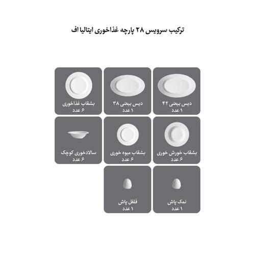 سرویس غذاخوری 28 پارچه 6 نفر چینی زرین ایران مدل Opera