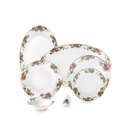 ظروف چینی ایتالیا اف با زیبایی کلاسیک و طراحی موزون خود، در اولین نگاه نظر هر بیننده ای را جلب می نماید. قطعات فوق العاده ظریف این پیکره به نحوی طراحی شده اند که از هر جهت پاسخگوی نیازهای مصرف کنندگان باشند. طرح نشات گرفته از خطوط منحنی ملایم در کنار کیفیت بسیار بالای بدنه چینی این ظروف، تکمیل کننده جذابیت ایتالیا اف می باشد.