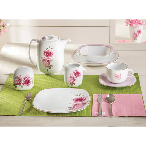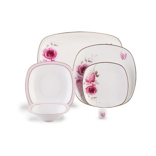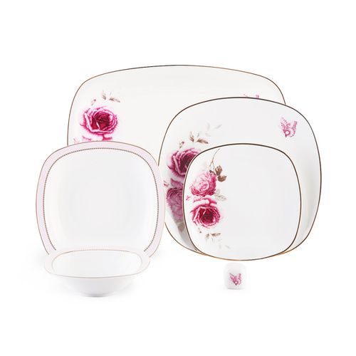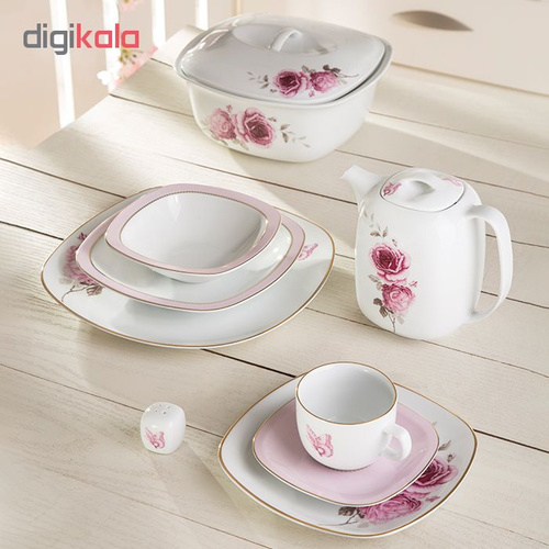 سرویس غذاخوری27 پارچه چینی زرین ایران سری کواترو مدل رزفلاور درجه عالی