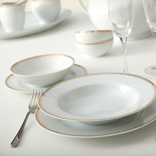 ظروف چینی ایتالیا اف با زیبایی کلاسیک و طراحی موزون خود، در اولین نگاه نظر هر بیننده ای را جلب می نماید. قطعات فوق العاده ظریف این پیکره به نحوی طراحی شده اند که از هر جهت پاسخگوی نیازهای مصرف کنندگان باشند. طرح نشات گرفته از خطوط منحنی ملایم در کنار کیفیت بسیار بالای بدنه چینی این ظروف، تکمیل کننده جذابیت ایتالیا اف می باشد.