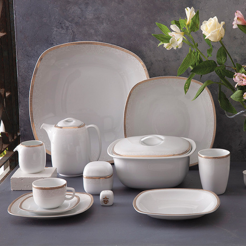 سرویس غذاخوری 98 پارچه 12 نفر چینی زرین ایران مدل ریوا سری کواترو درجه عالی