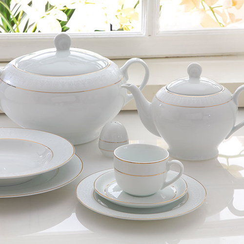 سرویس 102 پارچه «چینی زرین ایران» سری ایتالیا اف مدل «Sepid Sadaf» برای مهمانیهای مجلل 12 نفره طراحی شده است. این سرویس دارای یک سوپخوری دردار، یک کاسه بزرگ سالاد، 12 عدد پیاله سالادخوری، 3 عدد دیس، 18 عدد بشقاب غذاخوری، 12 عدد بشقاب خورشخوری، 18 عدد پیشدستی میوهخوری و 6 عدد نمکدان است. همچنین برای سرو چای نیز میتوانید روی این سرویس زیبا حساب کنید. زیرا سرویس غذاخوری 102 پارچه چینی زرین ایران دارای یک قوری، 12 عدد فنجان، 12 عدد نعلبکی، یک عدد قندان دردار و 2 عدد شکرریز است. به دلیل وجود 2 عدد ظرف شکر شما قادر هستید یکی را برای سرو شکر و دیگری را برای سرو شیر مورد استفاده قرار دهید. رنگ زمینه این سرویس سفید بوده و دارای حاشیههای زیبایی دورتادور ظروف است. فناوری ساخت این ظروف داخل لعابی بوده و با طلای ناب تزیین شده است. در نتیجه نمیتوانید در مایکروویو از این ظروف استفاده کنید، ولی به دلیل کیفیت عالی ساخت ظروف، قادر هستید از ماشین ظرفشویی برای شستوشوی آنها استفاده کنید. صنایع چینی زرین ایران با بهکارگیری بهترین مواد اولیه و دستگاههای تمام اتوماتیک توانسته ظروفی طراحی کند که مورد استقبال مصرفکنندگان بسیاری قرار گرفته است. این ظروف که هر کدام نتیجه ذوق و سلیقه طراحان حرفهای بوده و در عین ظرافت و زیبایی طراحی شدهاند. لعاب بهکار رفته برای ساخت این ظروف از بهترین نوع انتخاب شده تا هیچ خطری سلامت مصرفکننده را تهدید نکند.