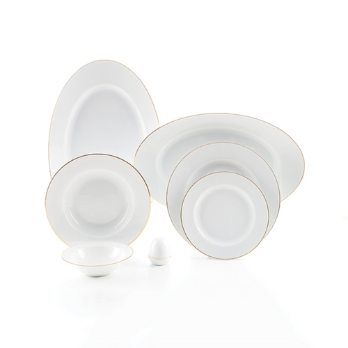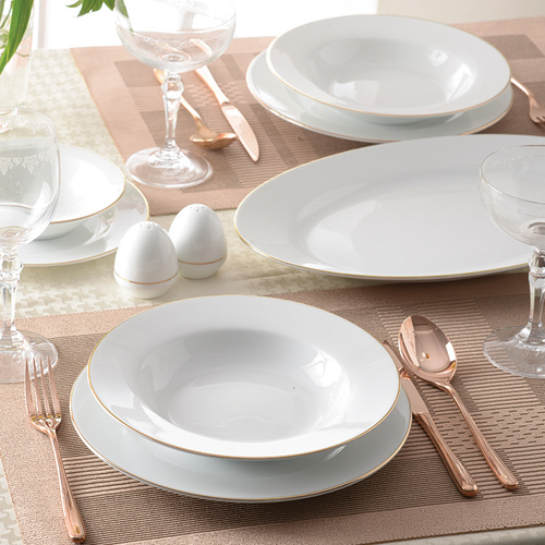 سرویس غذاخوری 28 پارچه 6 نفر چینی زرین ایران مدل ایتالیا اف زرین یک خط طلا درجه یک
