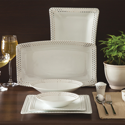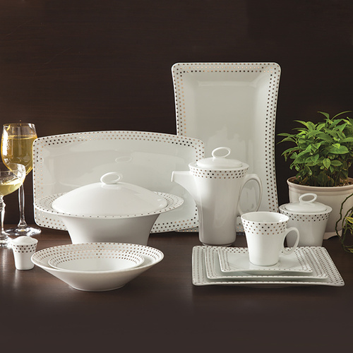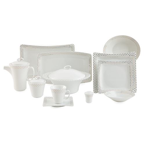 سرویس غذاخوری 97 پارچه چینی زرین سری وینچی مدل اسپاتی پلاتینی درجه عالی