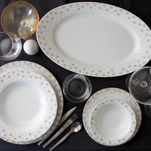 سرویس غذاخوری 28 پارچه چینی زرین ایران مدل ایتالیا اف کامومیلا کد 0128 درجه یک