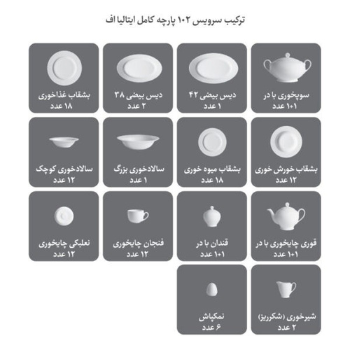 تعداد کلی ظروف102 پارچه